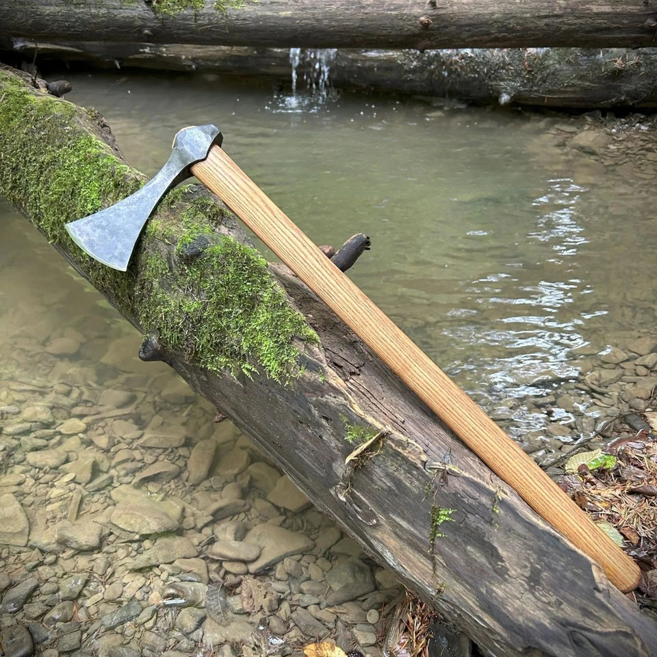 Hacha Vikinga de Acero al Carbono Forjada a Mano de Primera Calidad con Mango de Madera de Fresno, Regalo de Boda o Aniversario para Él, para Uso Industrial o Bricolaje