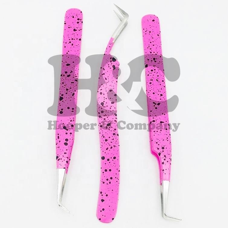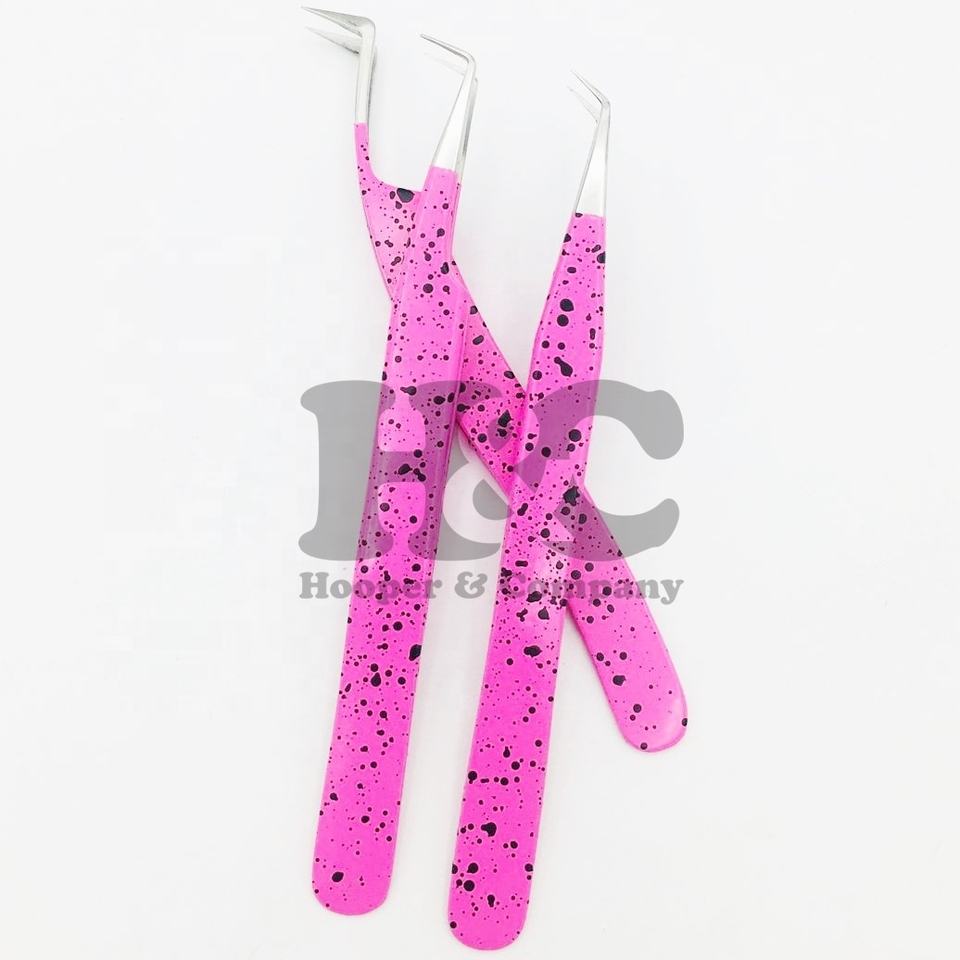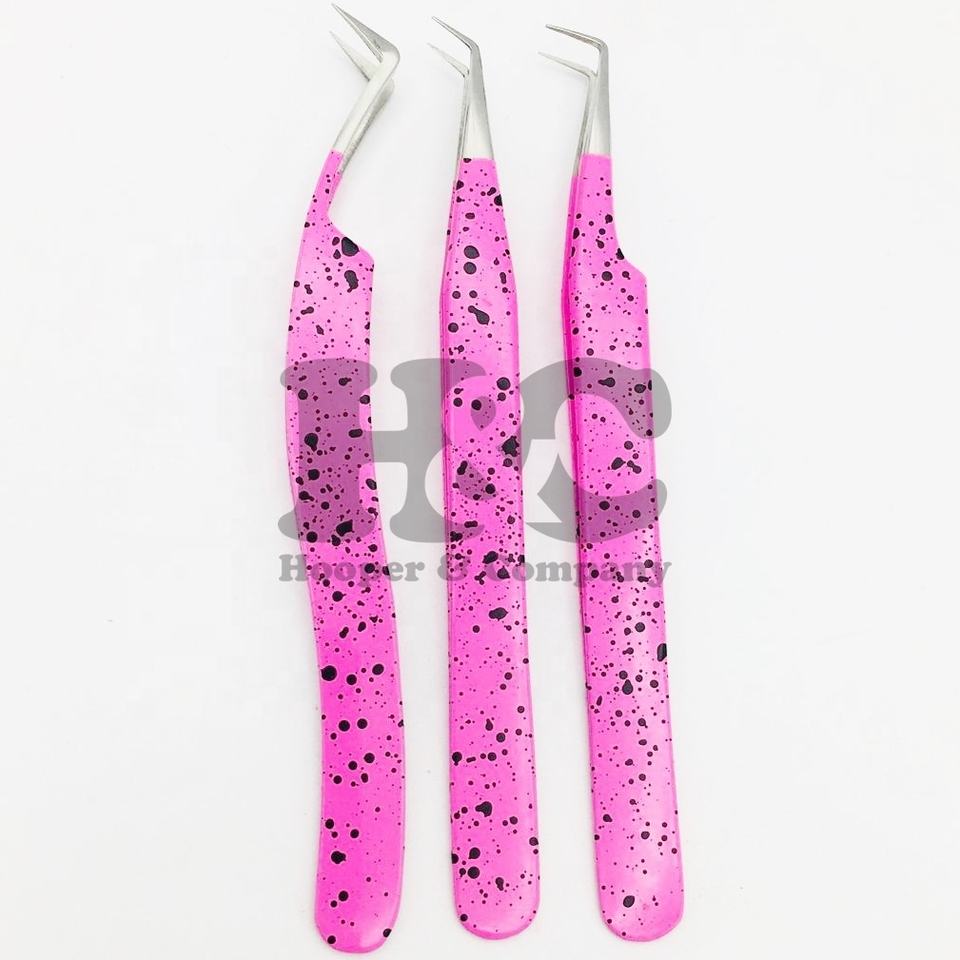 Top Deal Pink Ombre Design Punta fina Pinzas de volumen rusas Extensión de pestañas de acero inoxidable sostenible Pinzas de pestañas visón