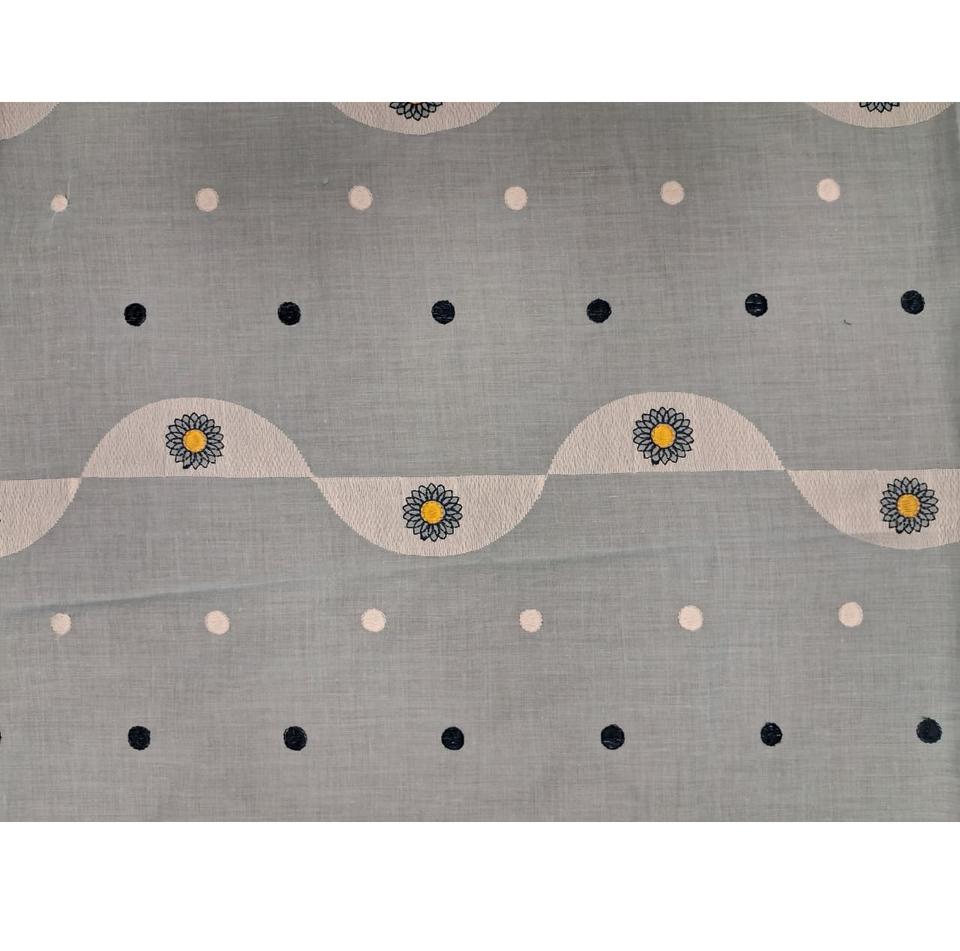Sky Blue Daisy Embroidered 100% Cotton FabricTipo