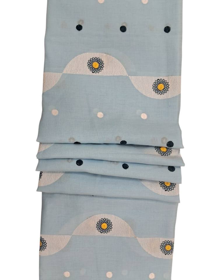 Sky Blue Daisy Embroidered 100% Cotton Fabric