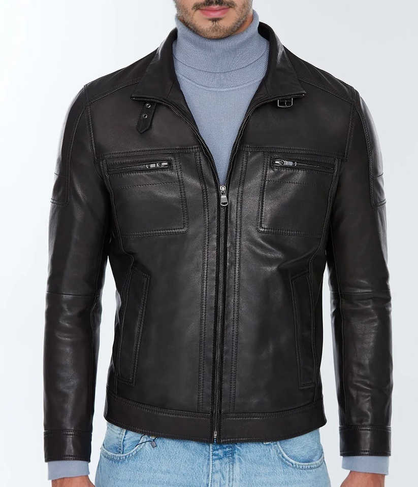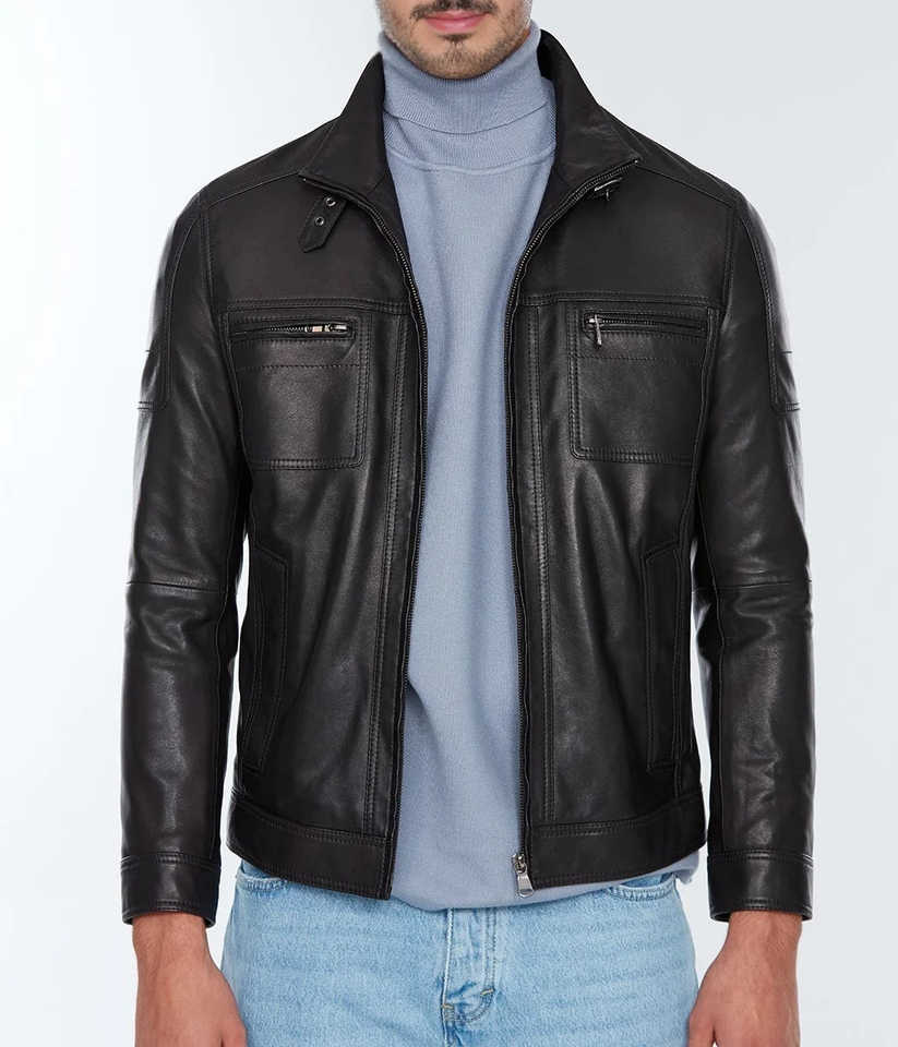 Palabras clave:Chaqueta hecha cuero genuino de los hombres
