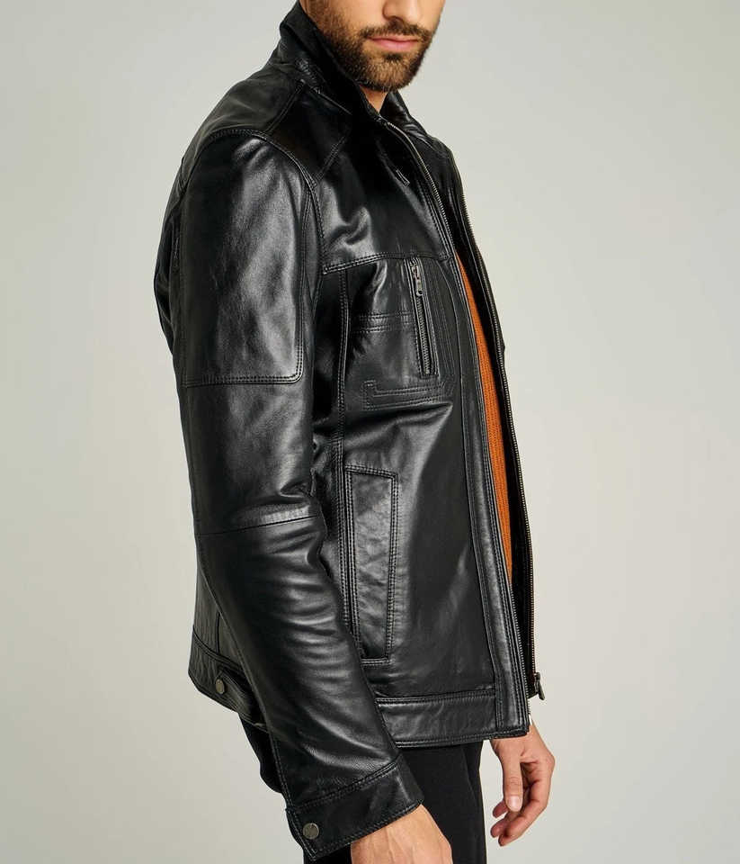 Diseño superior 100% Chaqueta de invierno de manga larga con cuello levantado de cuero de alta calidad para hombre Diseño personalizado disponible a un precio razonable