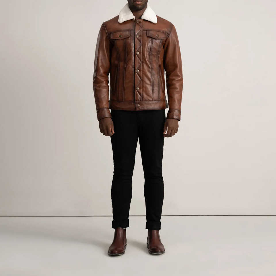 Palabras clave:Chaqueta hecha cuero genuino de los hombres