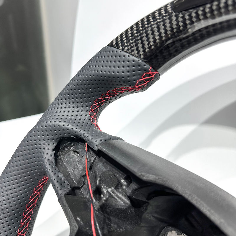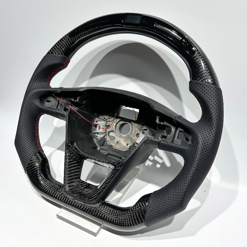 Volante Deportivo de Fibra de Carbono Negra Personalizado de Fábrica con Diseño Superior con LED, Apto para Seat Cupra Leon MK3