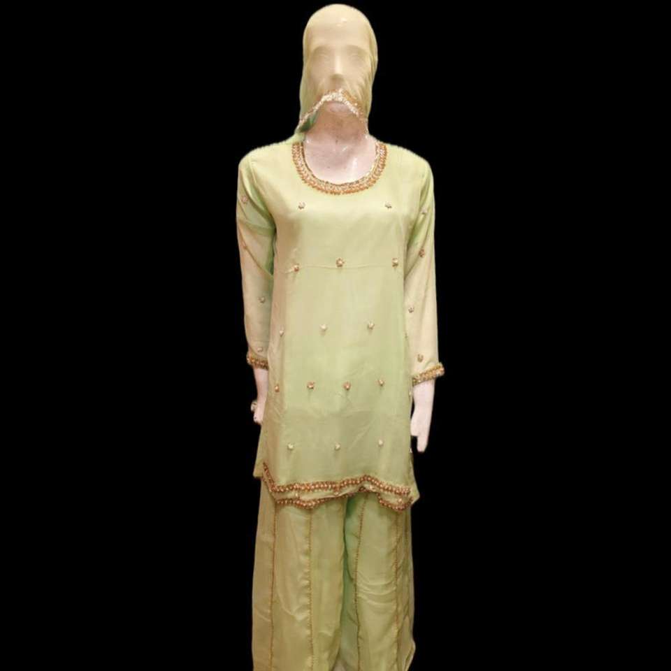 Top Diseños de alta calidad de las señoras Readymade Fancy Chiffon Suits con Shararas Elegantes vestidos de gasa para las mujeres