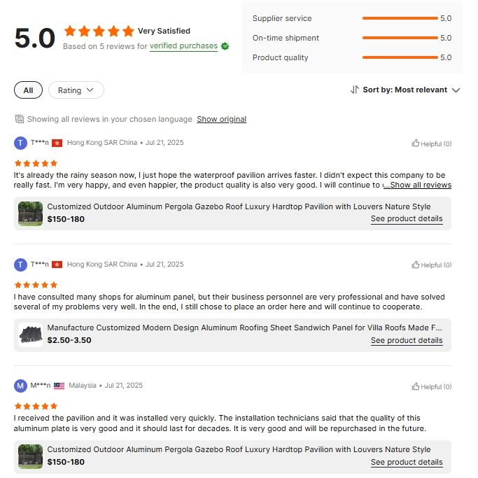 Cenador superior carcasa dura cubierta de aluminio para patio techo panel sándwich hojas de techo de aluminio ignífugo azulejos