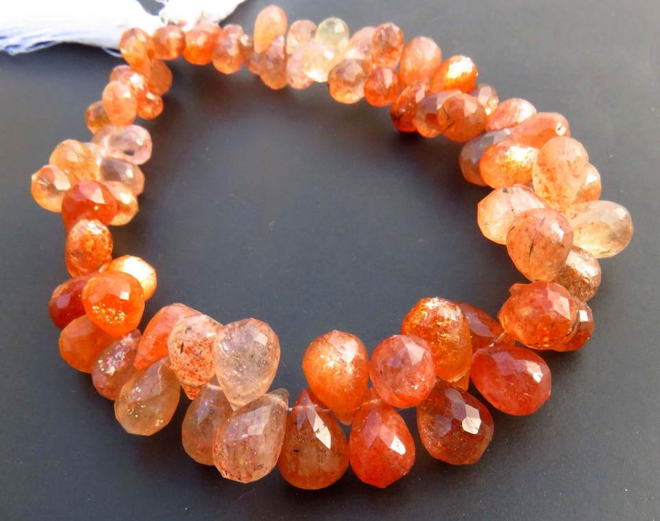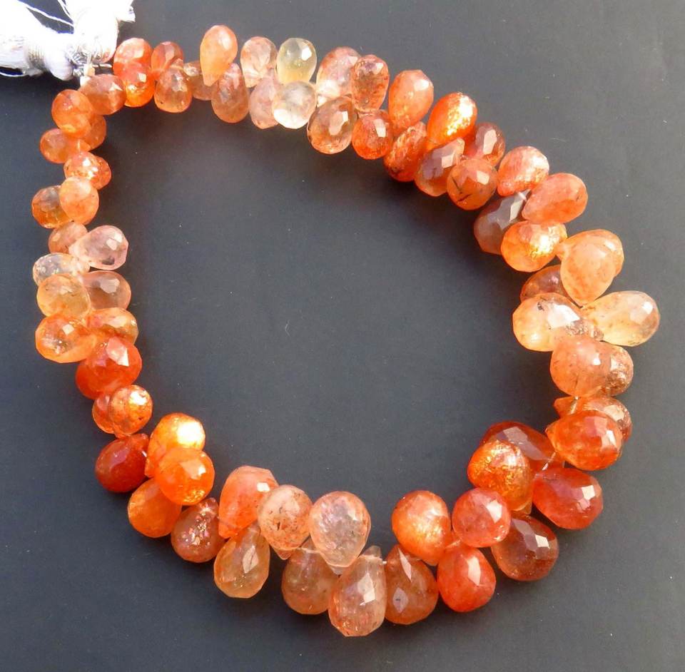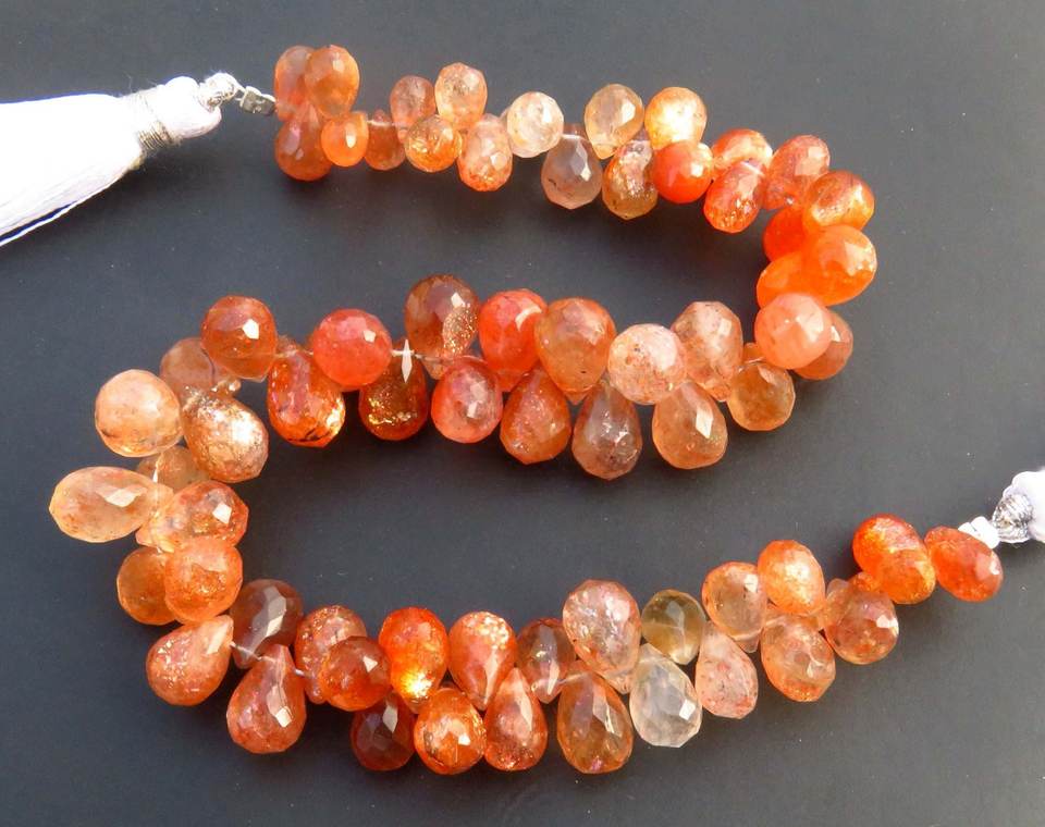 Grado superior 8,50 ''Strand 7-11mm Natural Sunstone Faceted Beads Orange African Sunstone Gems Briolette Loose Teardrop Beads