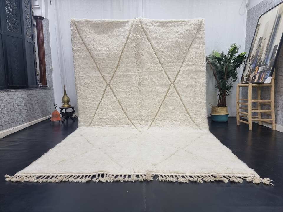 Alfombra de lana hecha a mano personalizada de grado superior, alfombra bereber marroquí de lana blanca Tribal, alfombra con patrón geométrico de mayorista indio