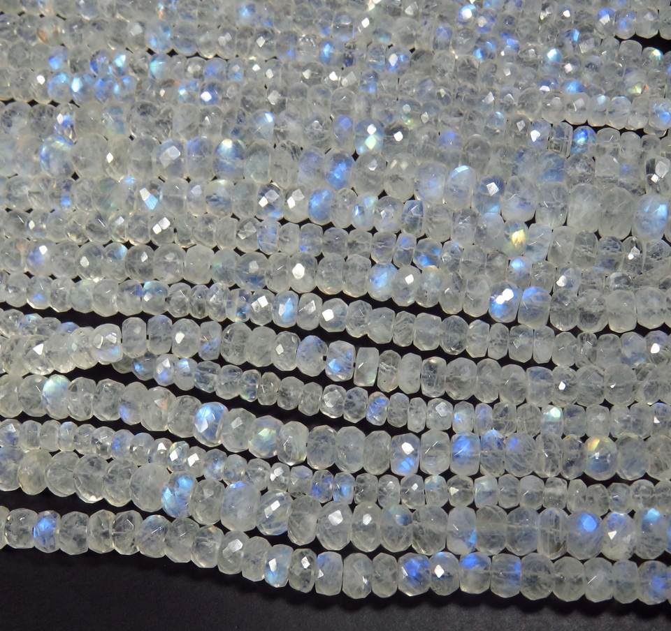 Grado superior 14 \ "Cuentas facetadas de piedra lunar natural Sueltas 5mm Arco Iris Hecatolita Gemas Cortadas Briolette Rondelle Beads