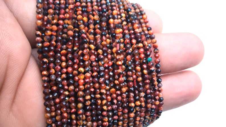 Cuentas de primera calidad de ojo de tigre Natural, 1 hilo, microfacetadas, para fabricación de joyas hechas a mano