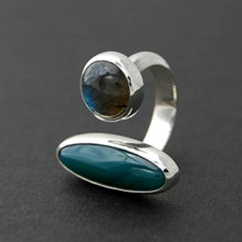 Anillo de Plata de Ley 925 hecho a mano de calidad superior Natural dos piedras Fuego Azul labradorita clásica para fiestas fábrica