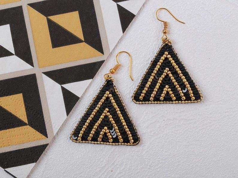 Pendientes con diseño de hoja bordados a mano con cuentas, con un hermoso diseño nuevo y acabado premium.