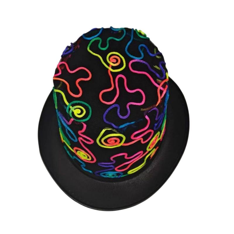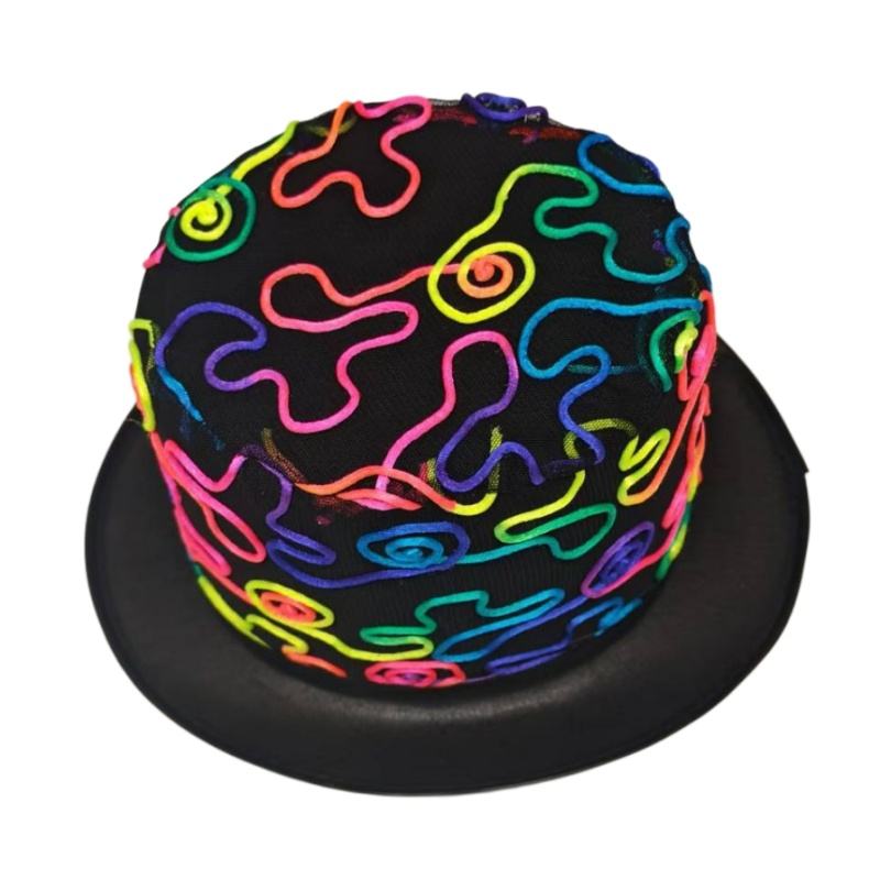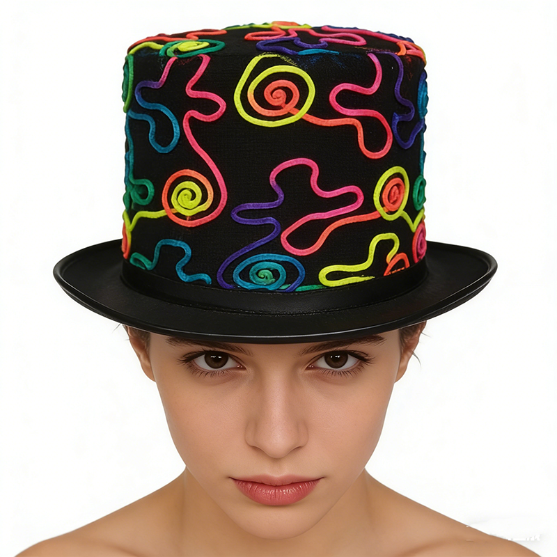 Sombrero de Copa Negro con Rayas de Colores, Unisex, para Actuaciones en Escenario, Fibra Modal, Protección Solar y Contra el Viento para Adultos