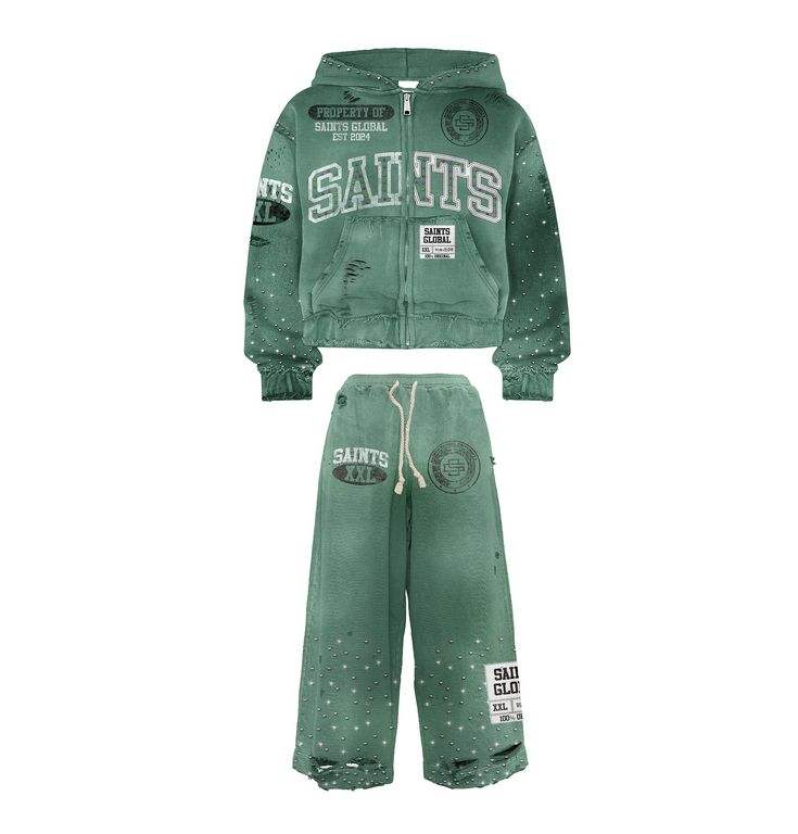 Top Heavyweight Serigrafía Parte inferior Disstress Pantalón Cremallera Sudaderas con capucha Personalizar con piedras preciosas Chándal de alta calidad