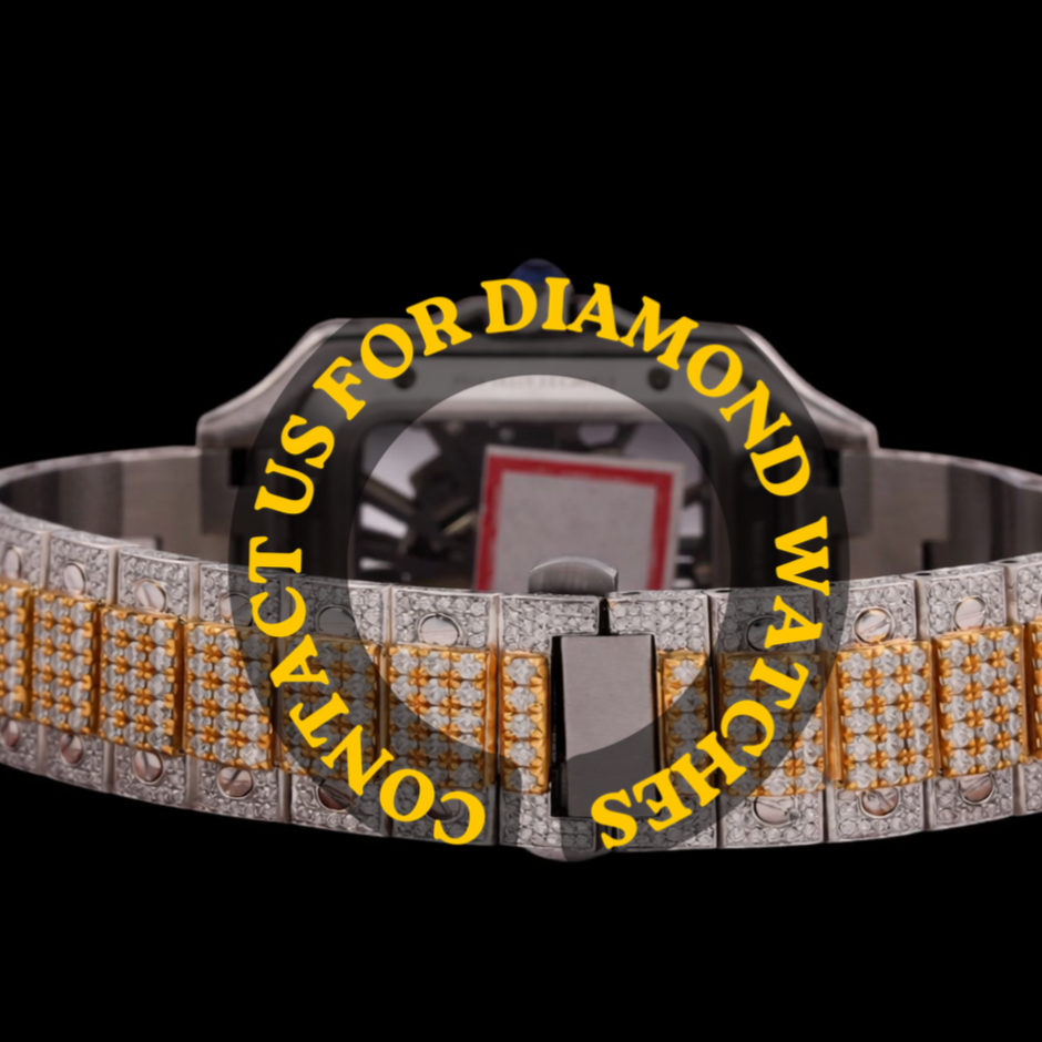 Reloj Mecánico de Alta Calidad con Esfera Cuadrada de Dos Tonos, Acero Inoxidable, Completamente Adornado con Diamantes Moissanite, Moderno y Elegante