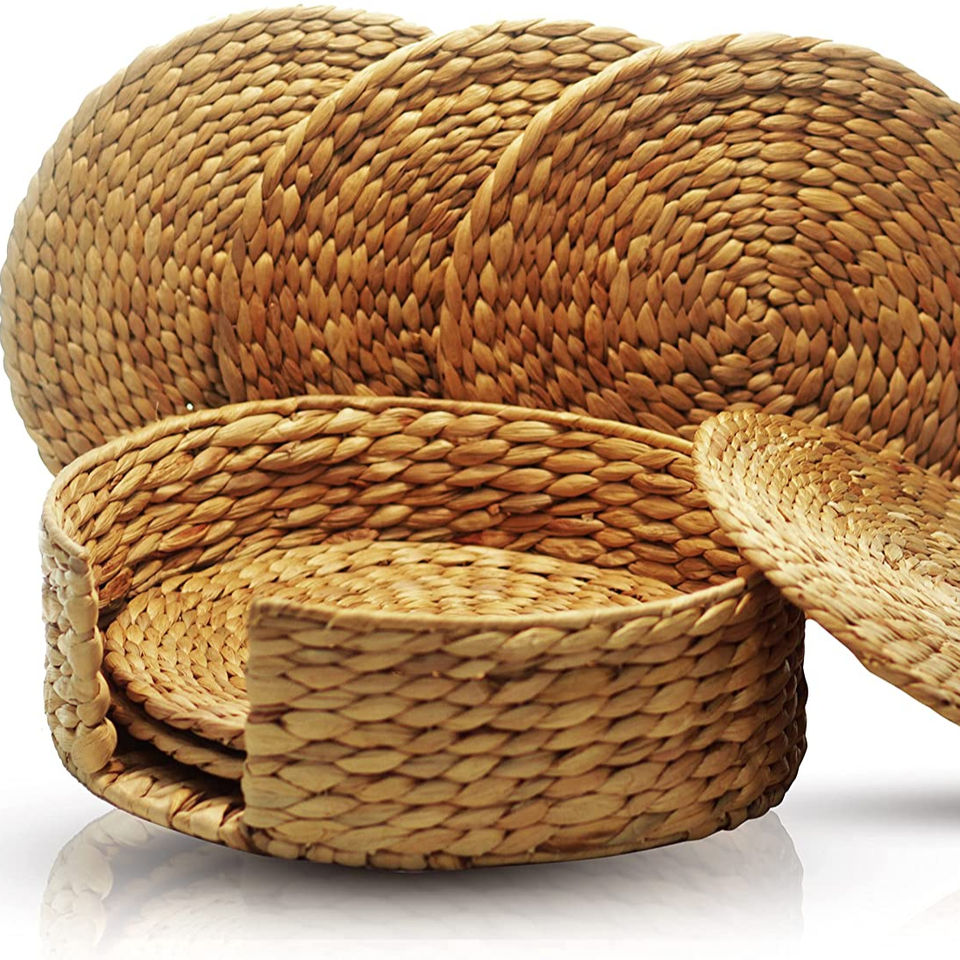Salvamanteles Redondo Vintage de Jacinto de Agua Tejido a Mano, Ecológico y de Alta Calidad, con Soporte, para Uso en Hoteles y Restaurantes, de Vietnam