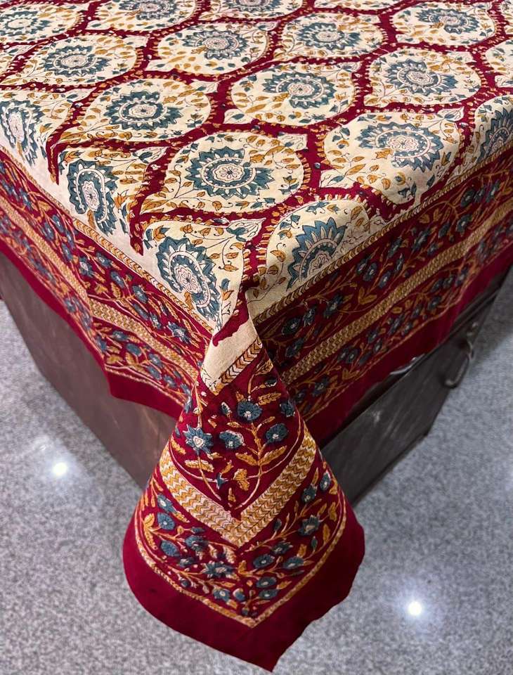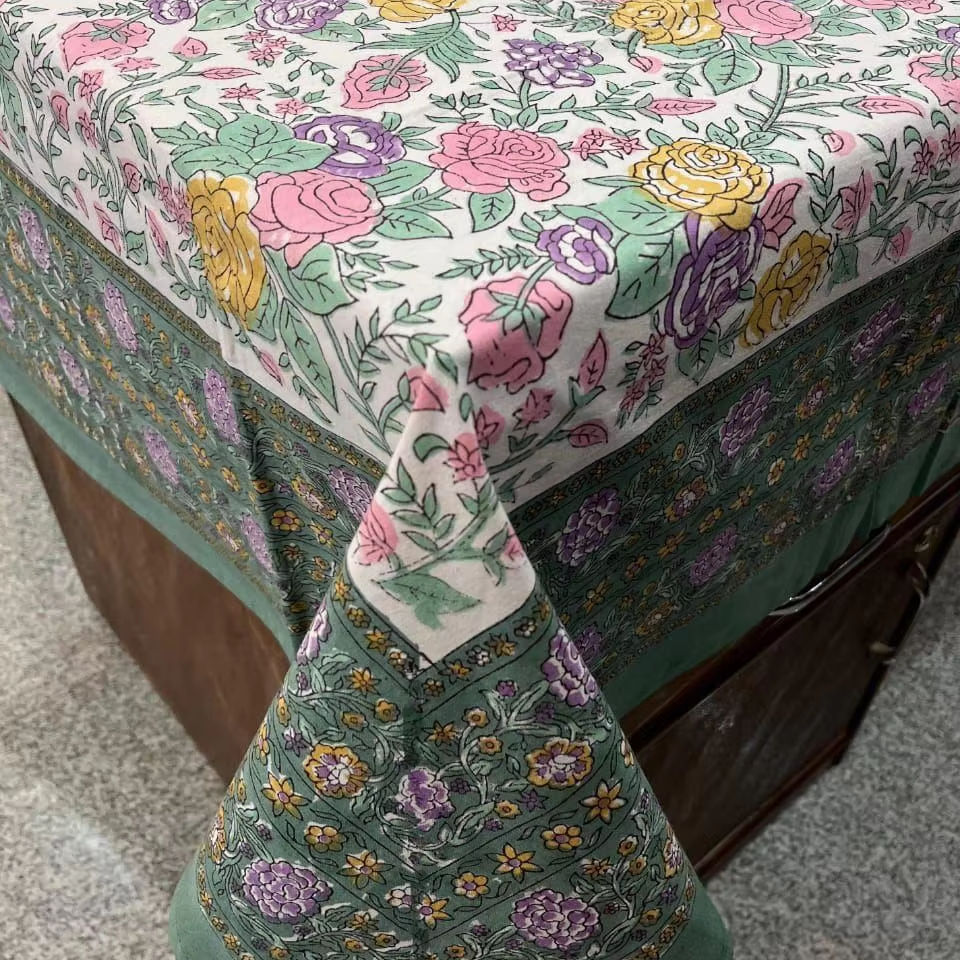 Mantel de algodón con estampado Handblock de la mejor calidad, cubierta de mesa OEM para fiesta en casa o Banquete, tela de cama con estampado Floral
