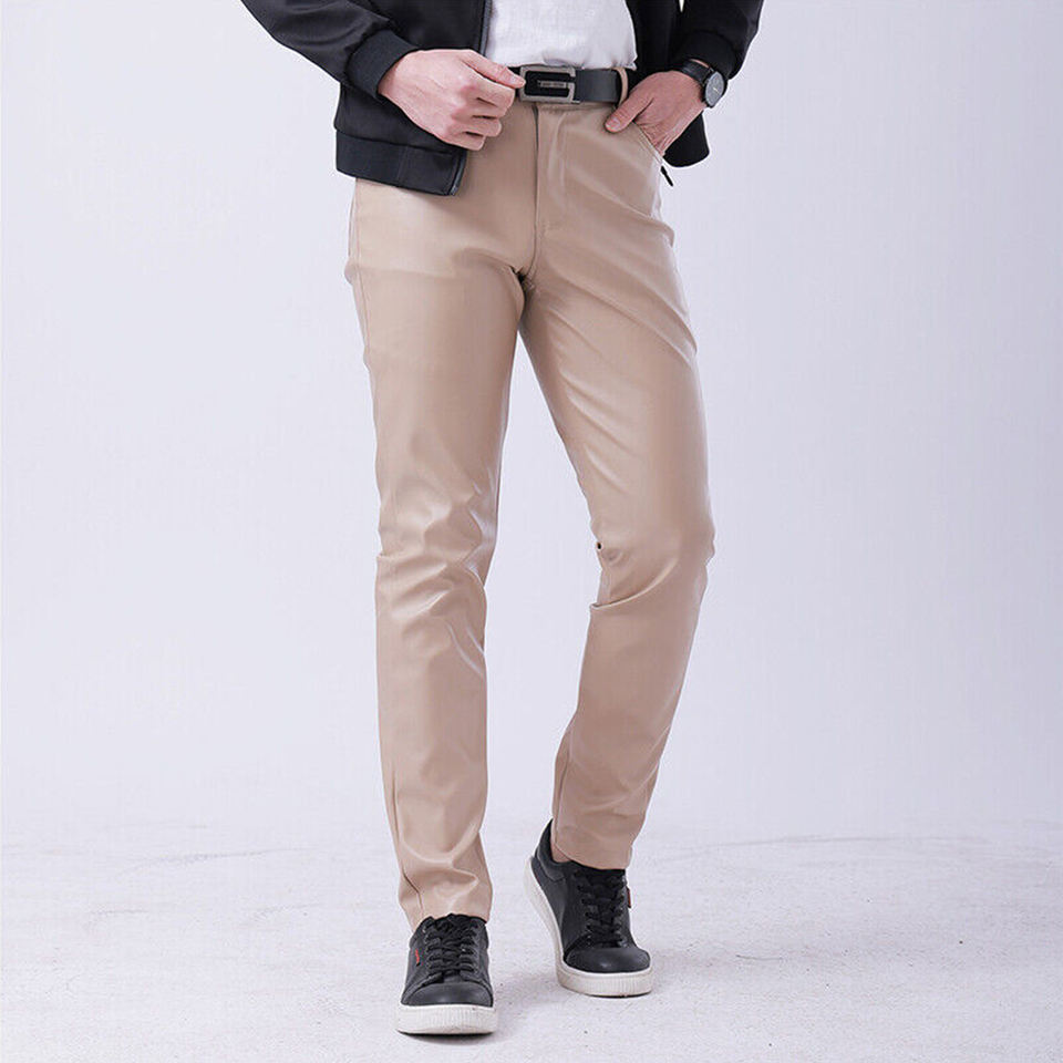 Pantalones de cuero rojo de venta caliente superior nueva moda pantalón de cuero de pierna ancha de cintura alta para hombres