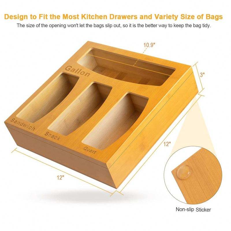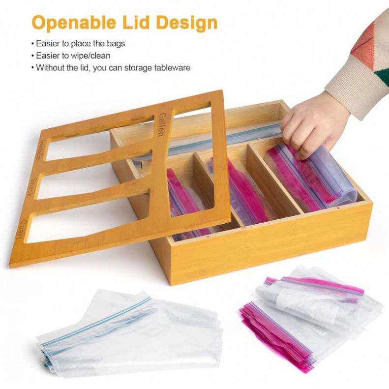 Organizador de Cajones de Cocina de Bambú con Tapas, Organizador de Almacenamiento de Bolsas Ziplock de Bambú