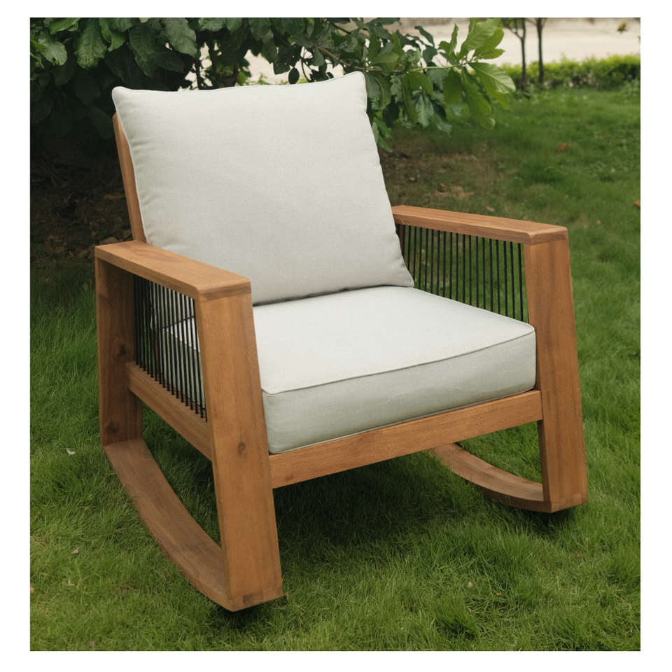 Silla Mecedora de Jardín Moderna de Madera de Acacia, Muebles de Exterior Duraderos para Patio Interior y Exterior, Muebles Minh Phuoc, Nuevo