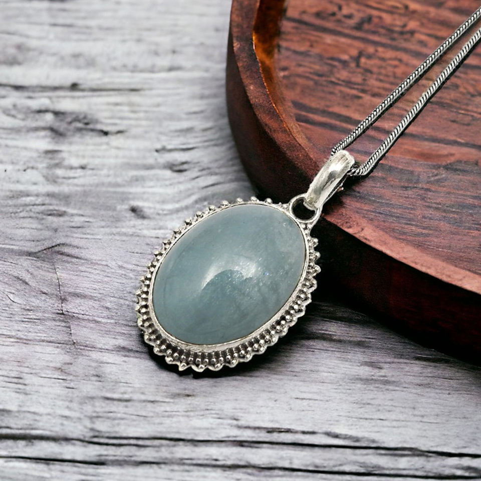 El producto más vendido en 2024, colgante de forma ovalada de piedras preciosas de Aguamarina Natural, joyería fina hecha a mano de Plata de Ley 925 India