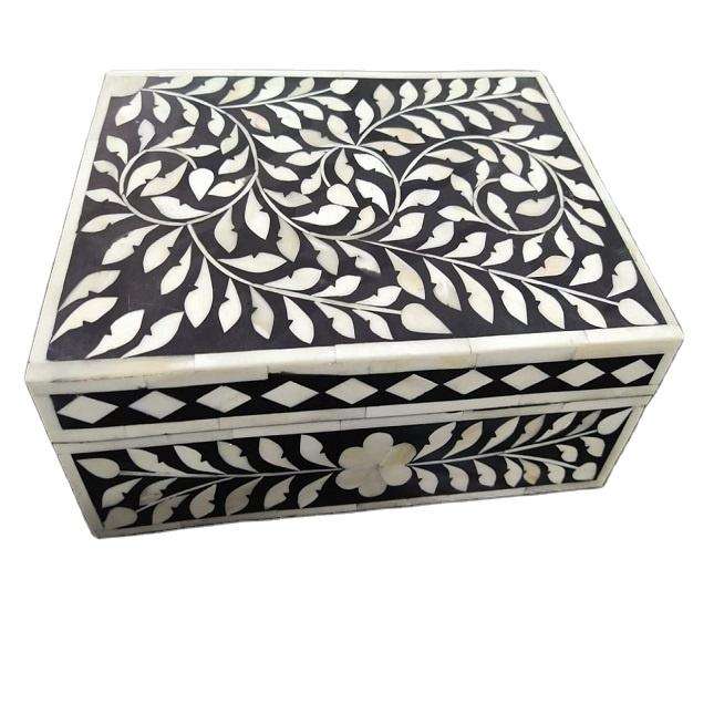 Caja de incrustaciones de hueso más estándar, caja de almacenamiento de incrustaciones de hueso de tamaño de diseño personalizado, caja decorativa de joyería de la India