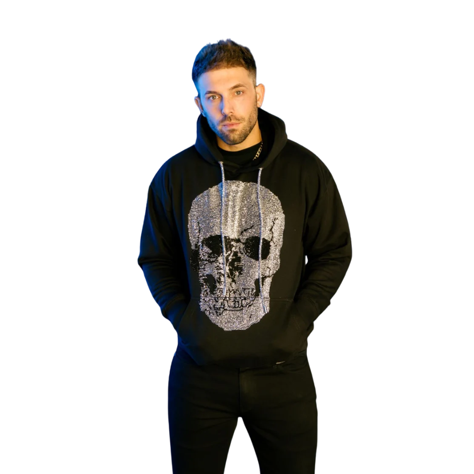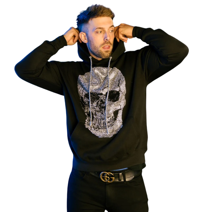 Top Notch Custom Rhinestone Design Pullover Hoodie Black Color-blocked Cotton Blended Sudadera con capucha Basics Tops para hombres