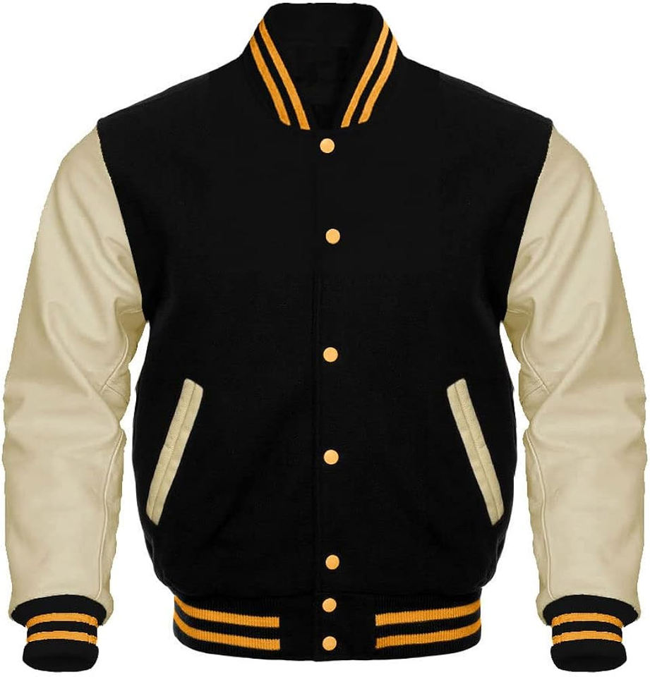 Chaquetas Varsity de Primera Calidad para Hombre, de Lana con Mangas de Cuero, con Botones, Parches Personalizables, Diseño Bordado, Unisex