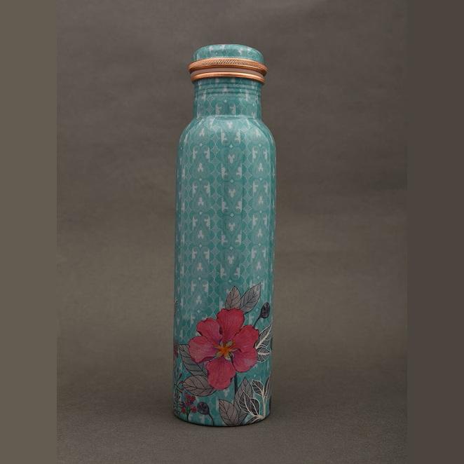 Botella de agua de cobre impresa con diseño de flores Top Pick, botella de agua de Metal Ayurvédico hecha a mano para uso de oficina y regalos corporativos