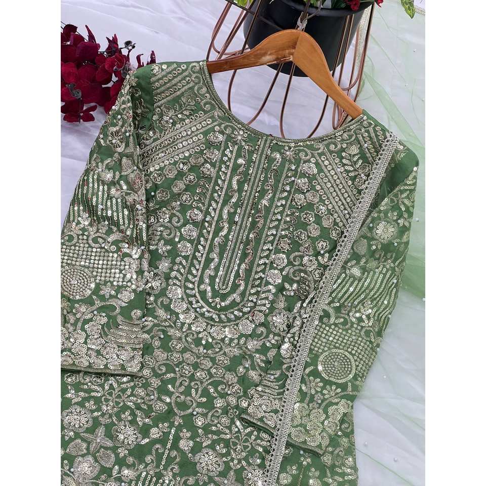 Top-Plazzo y Dupatta Set con bordado pesado Tamaño XL para look de fiesta