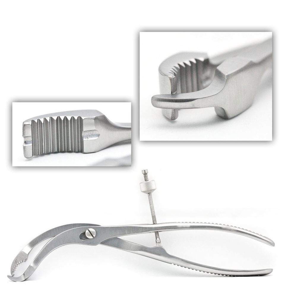Instrumento ortopédico de producción superior, fórceps de sujeción de hueso Verbrugge quirúrgico de 14 cm con rosca fija, hecho de metal de acero inoxidable