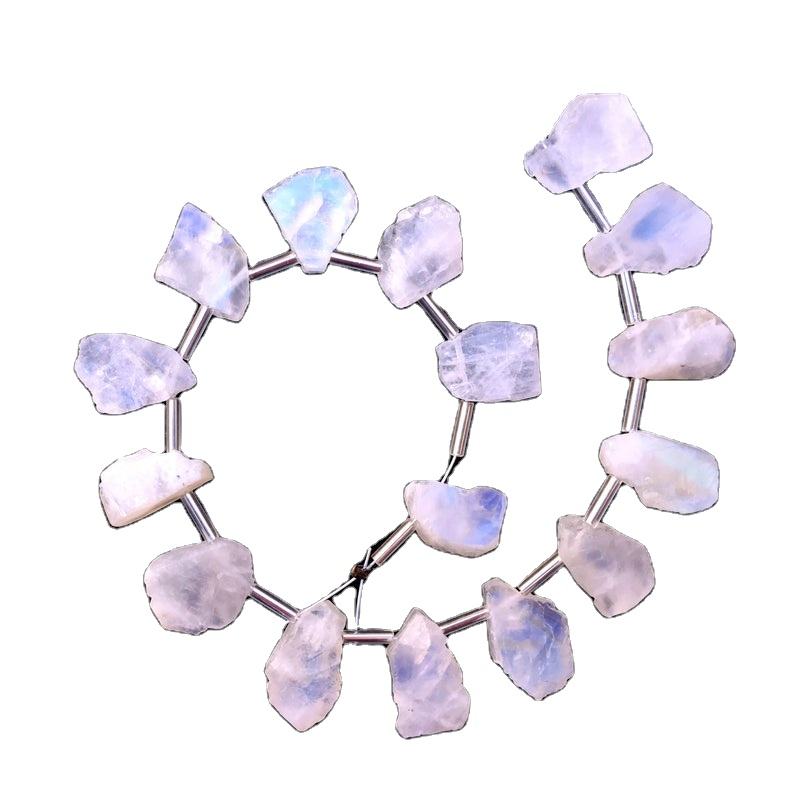 Piedra lunar arcoíris Natural de 1 hebra de alta calidad, azul llamativo, 20 piezas, taladro lateral superior, piedra preciosa áspera sin tratar