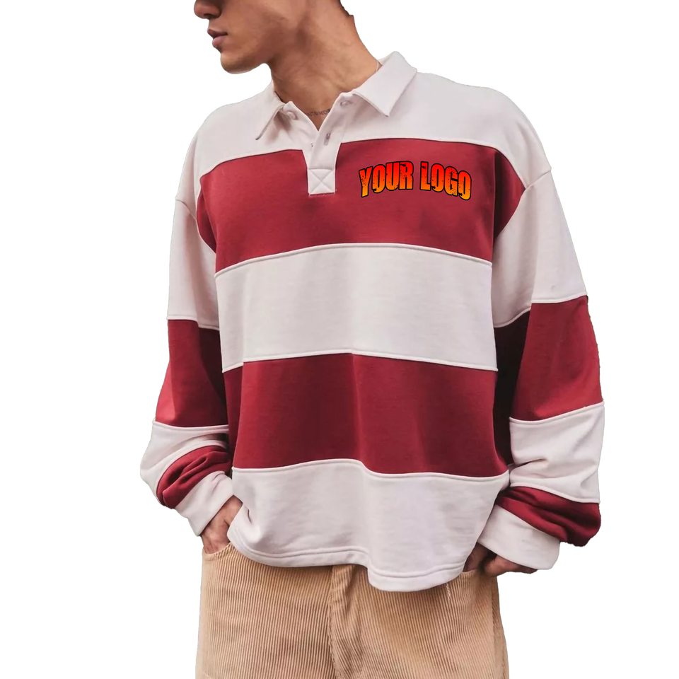 Polo de tiras para hombre con logotipo impreso DTF personalizado de algodón 100% de alta calidad, ropa informal de verano, polos para hombre con bloques de color