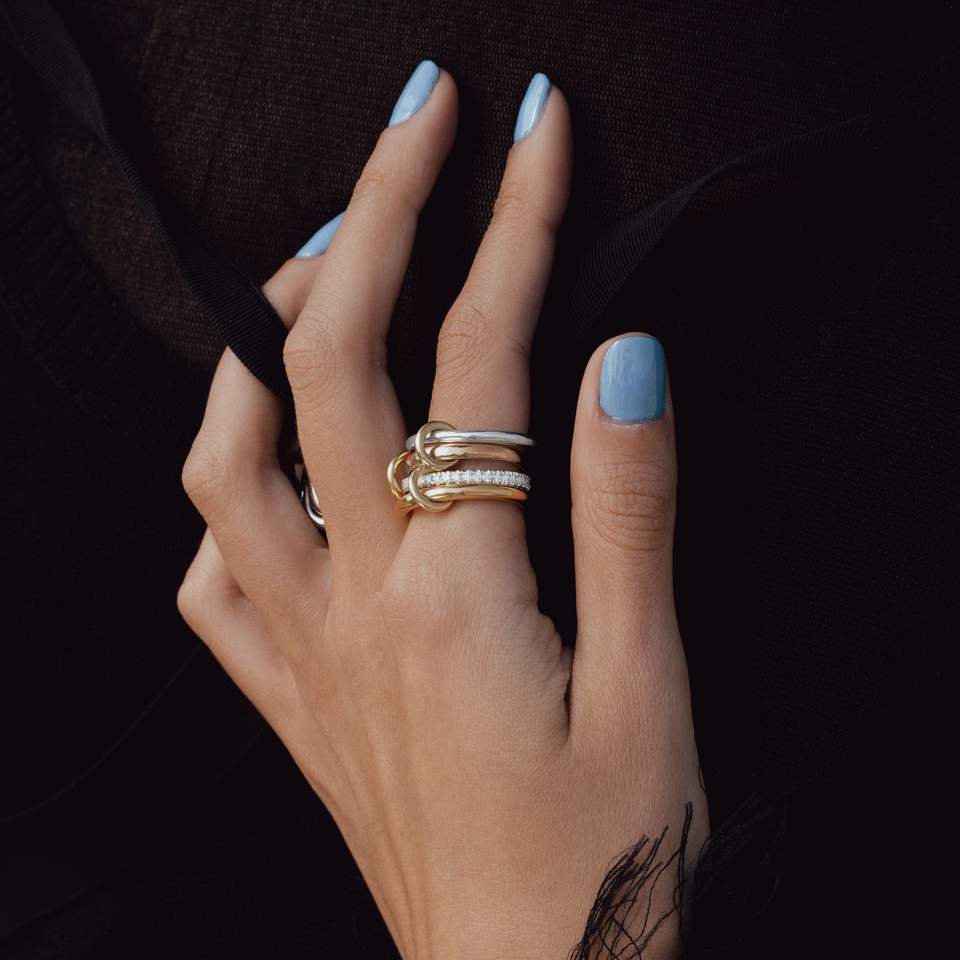 Anillo conector de eslabones múltiples de oro sólido de 18K de alta calidad, anillo redondo de diamante de moissanita, anillo de eternidad entrelazado, regalo para ella