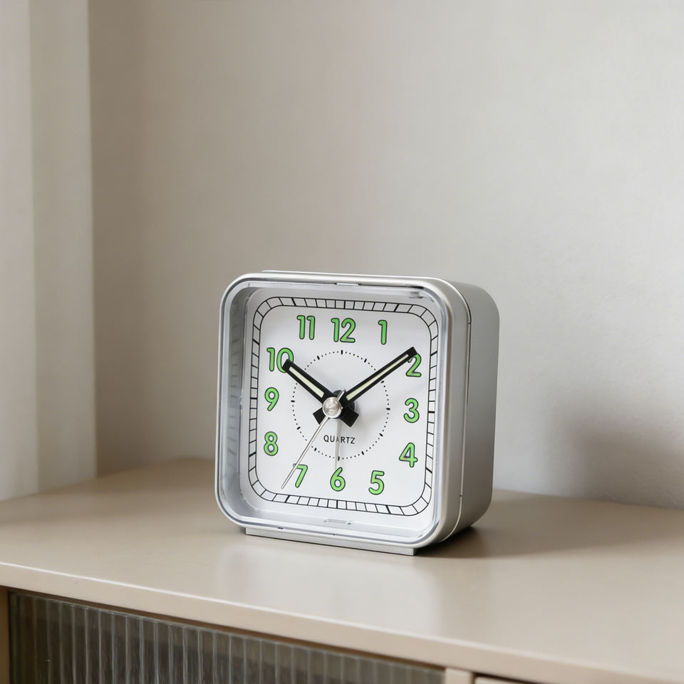 Reloj Despertador Analógico Cuadrado Mini de 2.5 Pulgadas de Alta Calidad con Esfera Luminosa para Uso Portátil