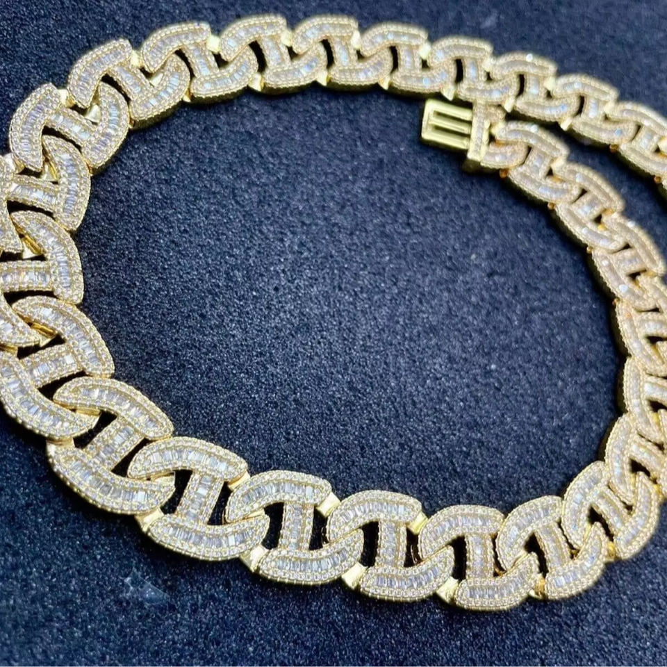 Collar de Cadena Cubana de Alta Calidad de 20 mm, Dos Tonos, con Diamantes Cultivados en Laboratorio con Claridad VVS, Estilo Miami Hip Hop Bling Rapper