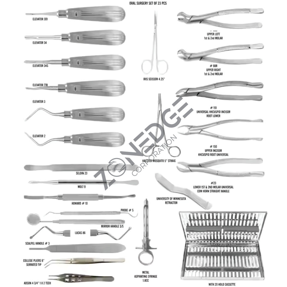 Juego de instrumentos de cirugía Dental y Oral Manual de acero inoxidable de 24 piezas de alta calidad con casete de esterilización certificado CE ISO