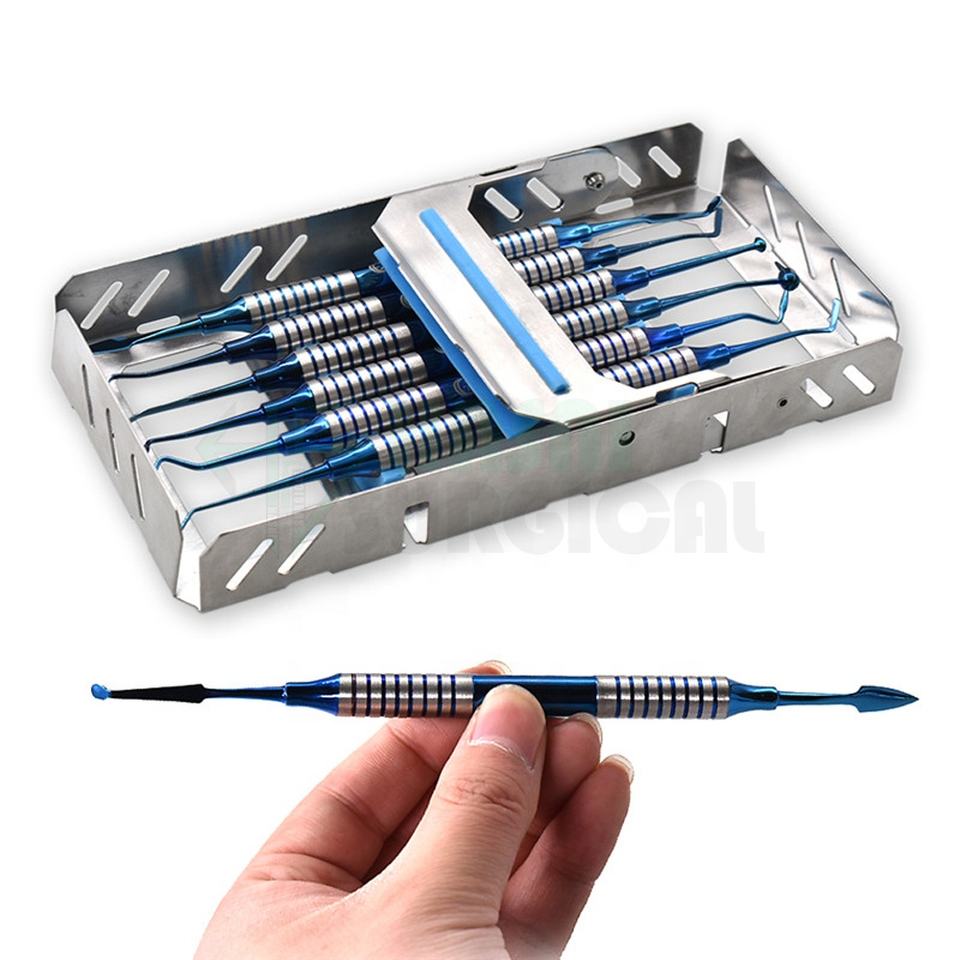 6 unids/caja de alta calidad, espátula de relleno de resina compuesta Dental, juego de relleno de resina con cabeza chapada en titanio con caja de desinfección de Metal