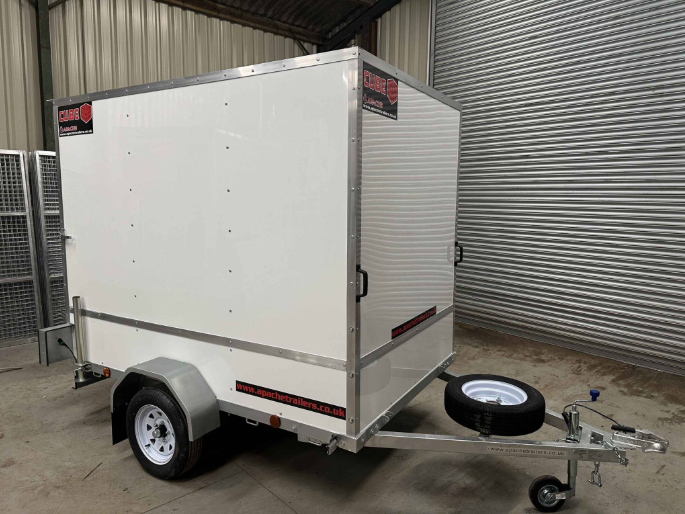 Remolque de Caja de Alta Calidad de 8 pies x 5 pies, Modelo Cube Plus 85, con 6 pies de Altura Interna y Rampa de Carga Trasera en Color Blanco