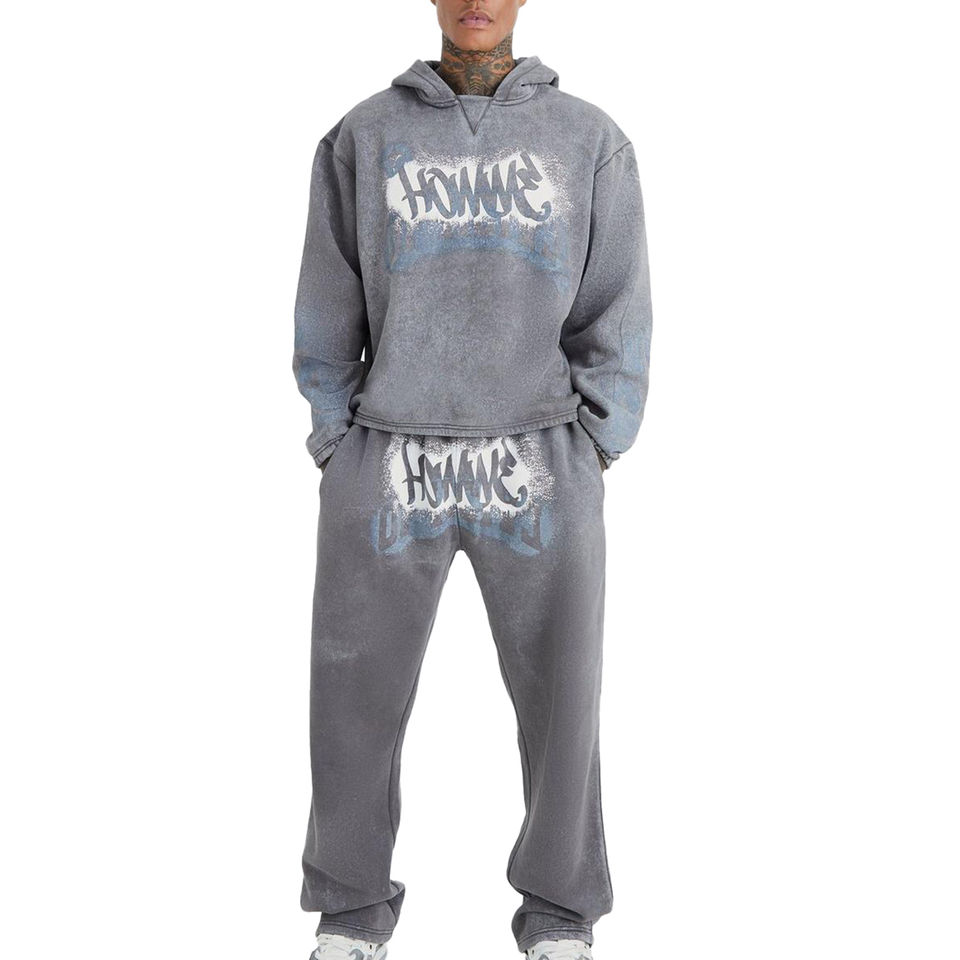 Chándal lavado con ácido de alta calidad para hombres y mujeres, chándal con estampado de pantalla personalizado de estilo acampanado, conjunto de 2 uds, chándal con estampado de soplo