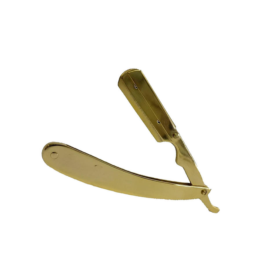 Maquinilla de afeitar de peluquero de alta calidad, maquinillas de afeitar plegables manuales de Color dorado completo, maquinillas de afeitar de garganta cortadas de 5,5 "para belleza con tamaño personalizado
