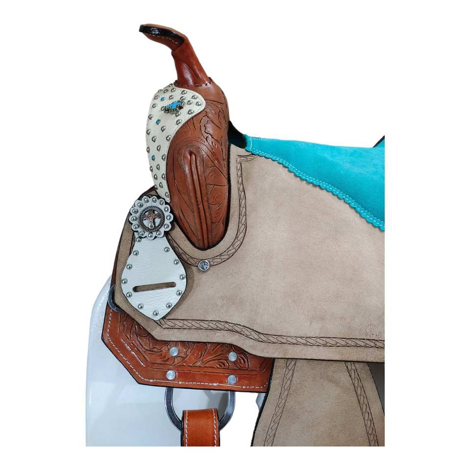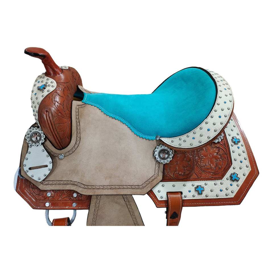 Monturas para adultos de carreras de barril de alta calidad, venta al por mayor, monturas de caballo occidentales Premium hechas a mano de cuero genuino, tachuela de vaquero de Rodeo a granel