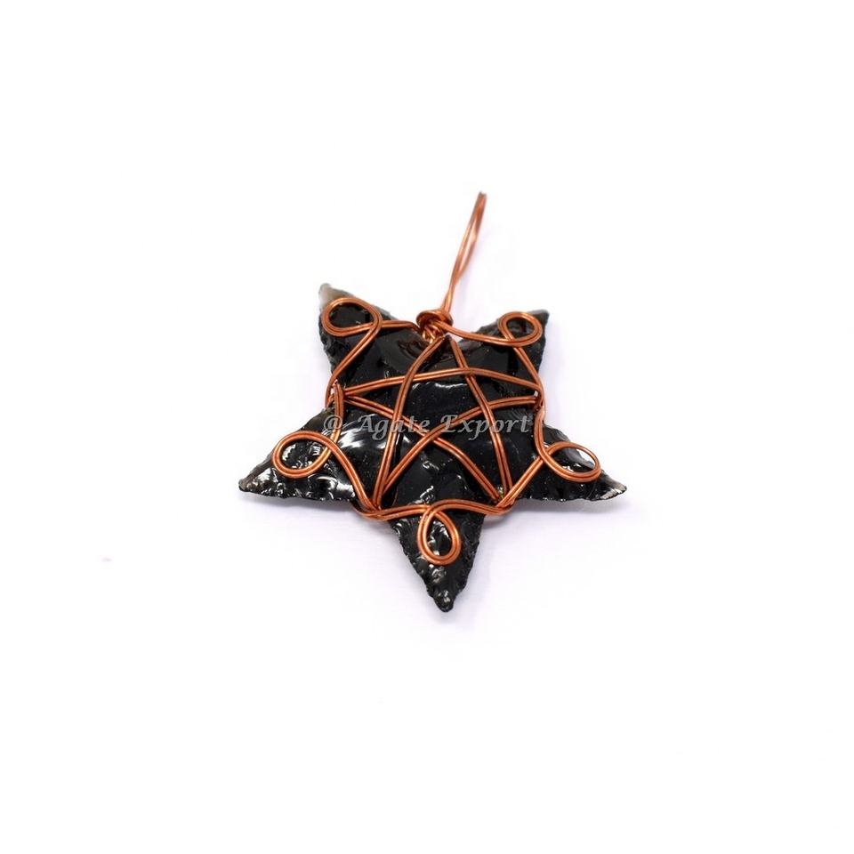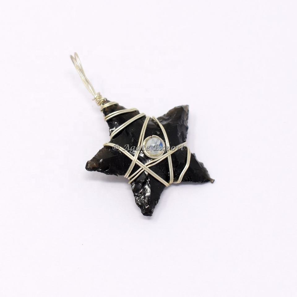 Luna de obsidiana negra de alta calidad con colgante de envoltura de alambre de arcoíris Kambhat colgante envuelto en piedra de ágata con cristales piedra curativa