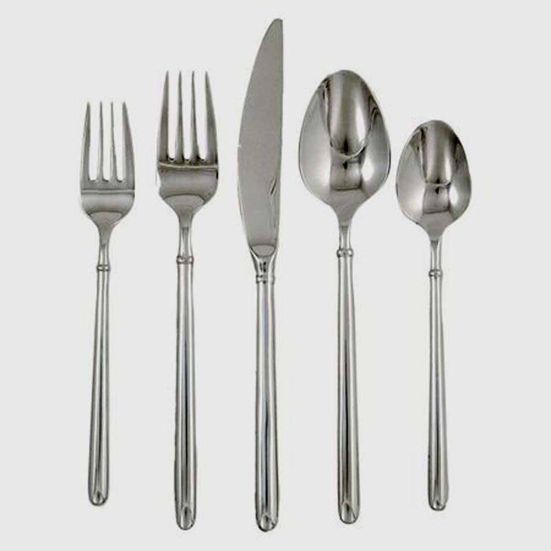 Cubiertos de acero inoxidable de diseño Simple más barato de alta calidad, elegante cuchara, cuchillo, tenedor, juego de cubiertos, acabado plateado para Hotel y hogar
