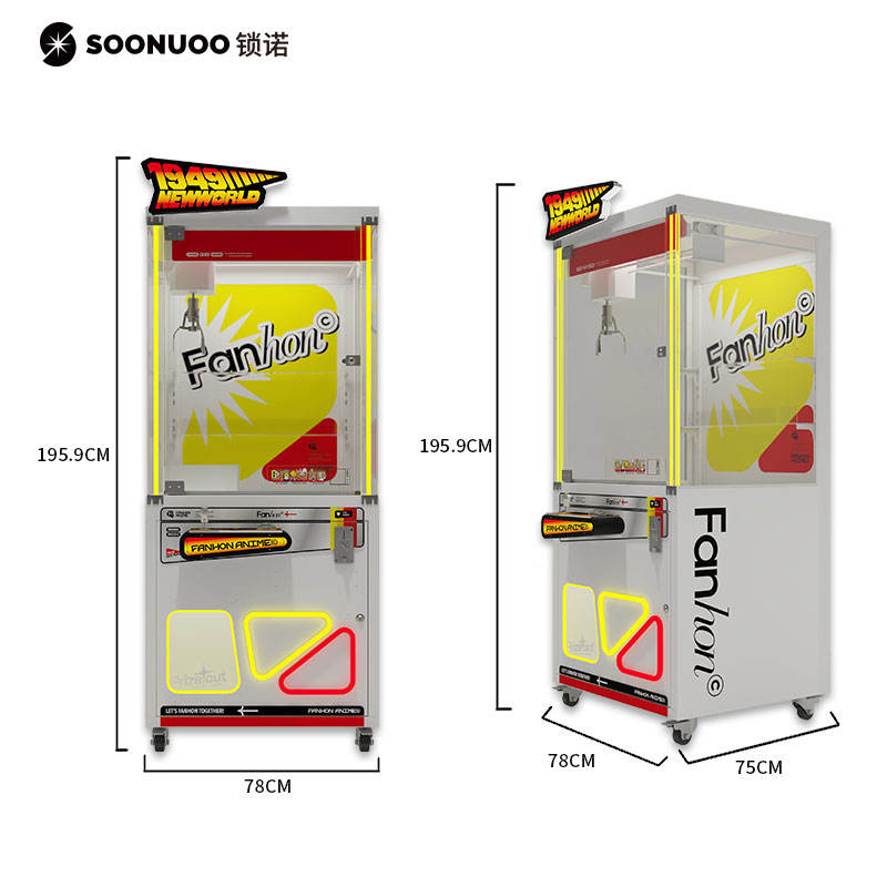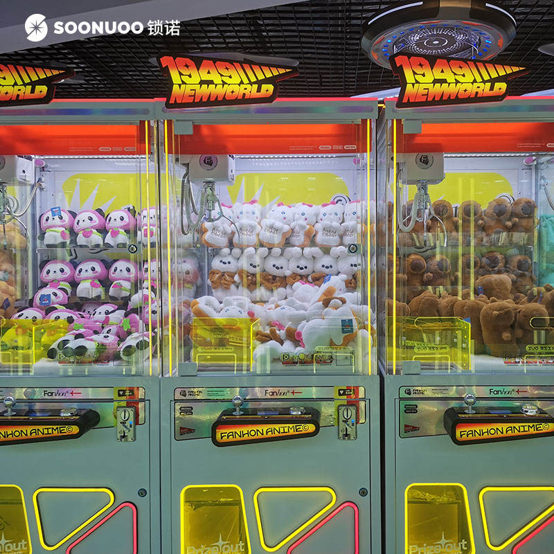 Modo de juego:El botón y el joystick controlan la grúa de garras para conseguir muñecos.