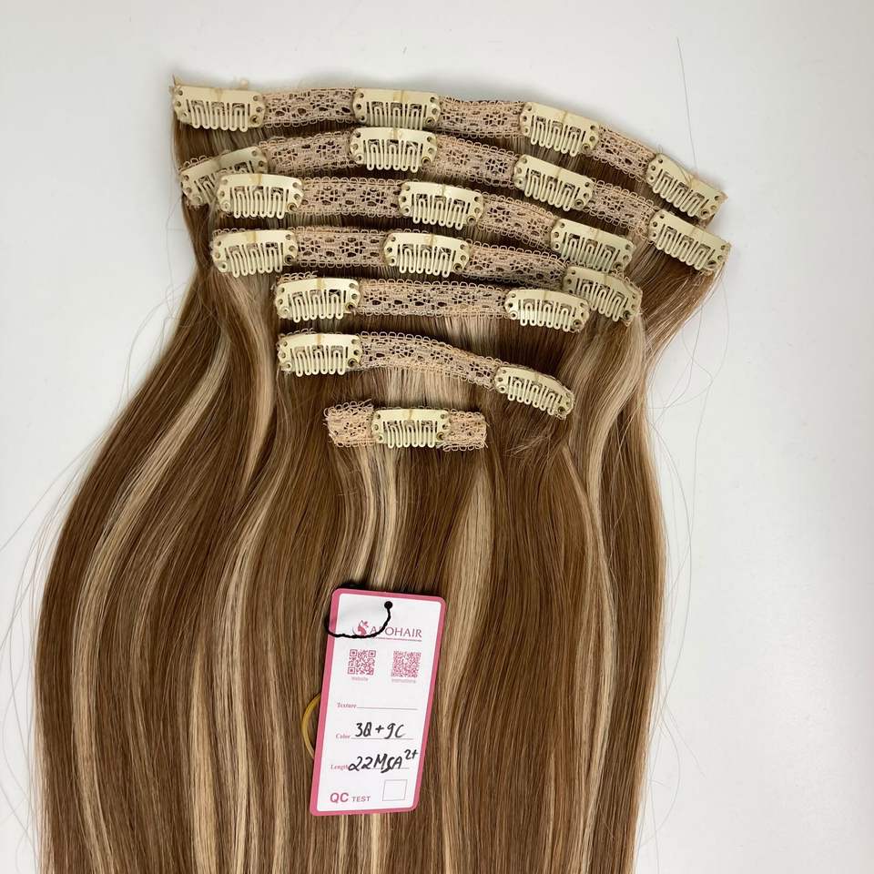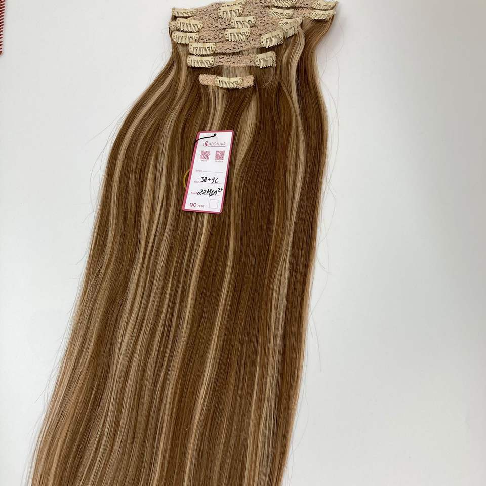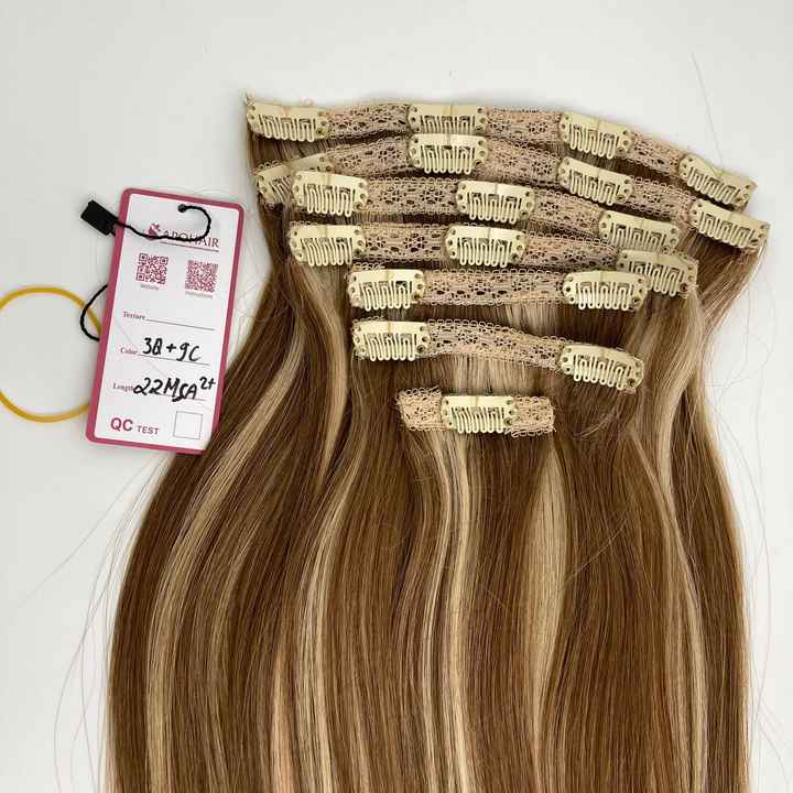 Clip de alta calidad en mezcla de colores # 3Q & # 9C Cabello Remy 22 pulgadas Recto 100% Remy Top en extensión de cabello