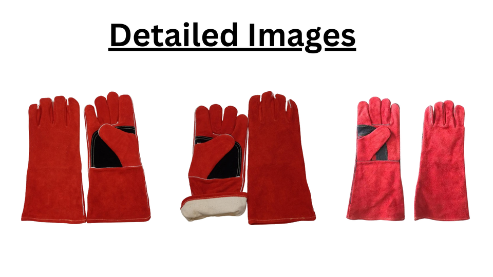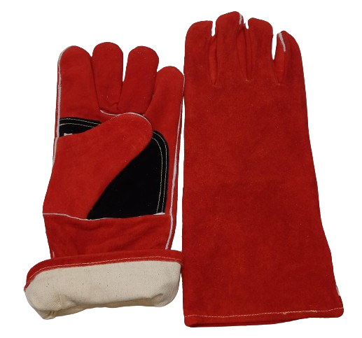 Guantes de soldadura rojos de cuero dividido de vaca de alta calidad 14 pulgadas 16 pulgadas seguridad Anti calor guantes resistentes al fuego hombres mujeres doble palma