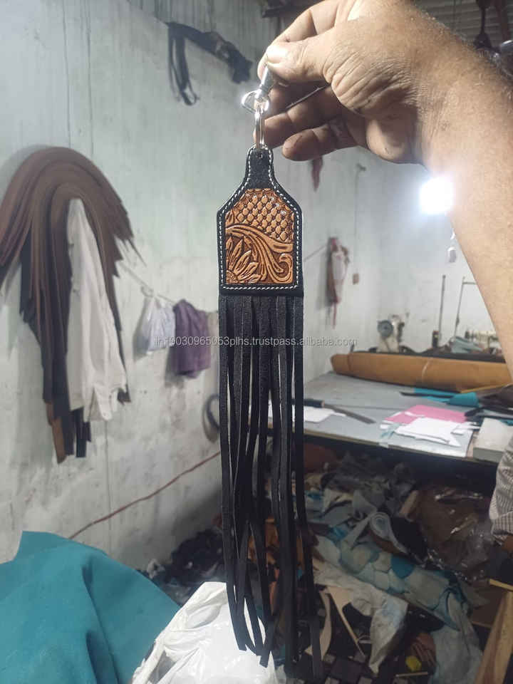 Llavero occidental de cuero de vaca de alta calidad, llavero, llavero, diseño Floral a mano, diseño de flecos de Rodeo International