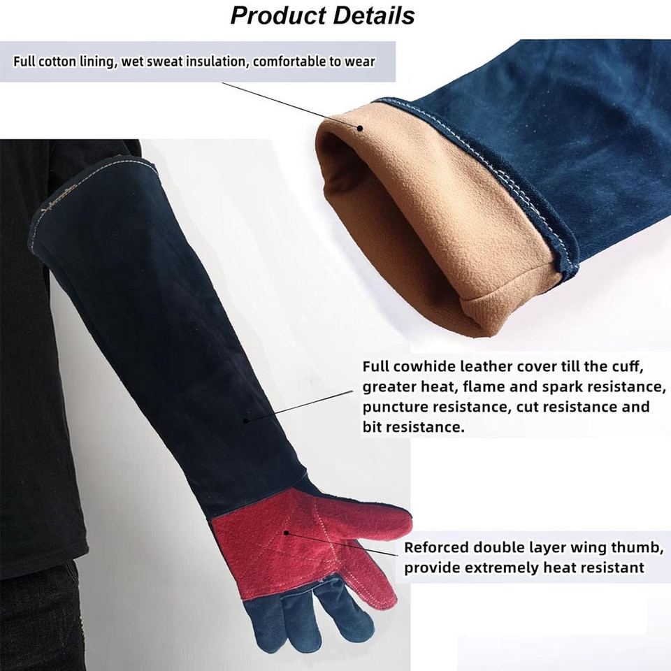Guantes de Soldadura de Cuero Vacuno de Primera Calidad, con Puño Largo, Resistentes al Calor y a las Chispas, para Seguridad en la Construcción y Bomberos