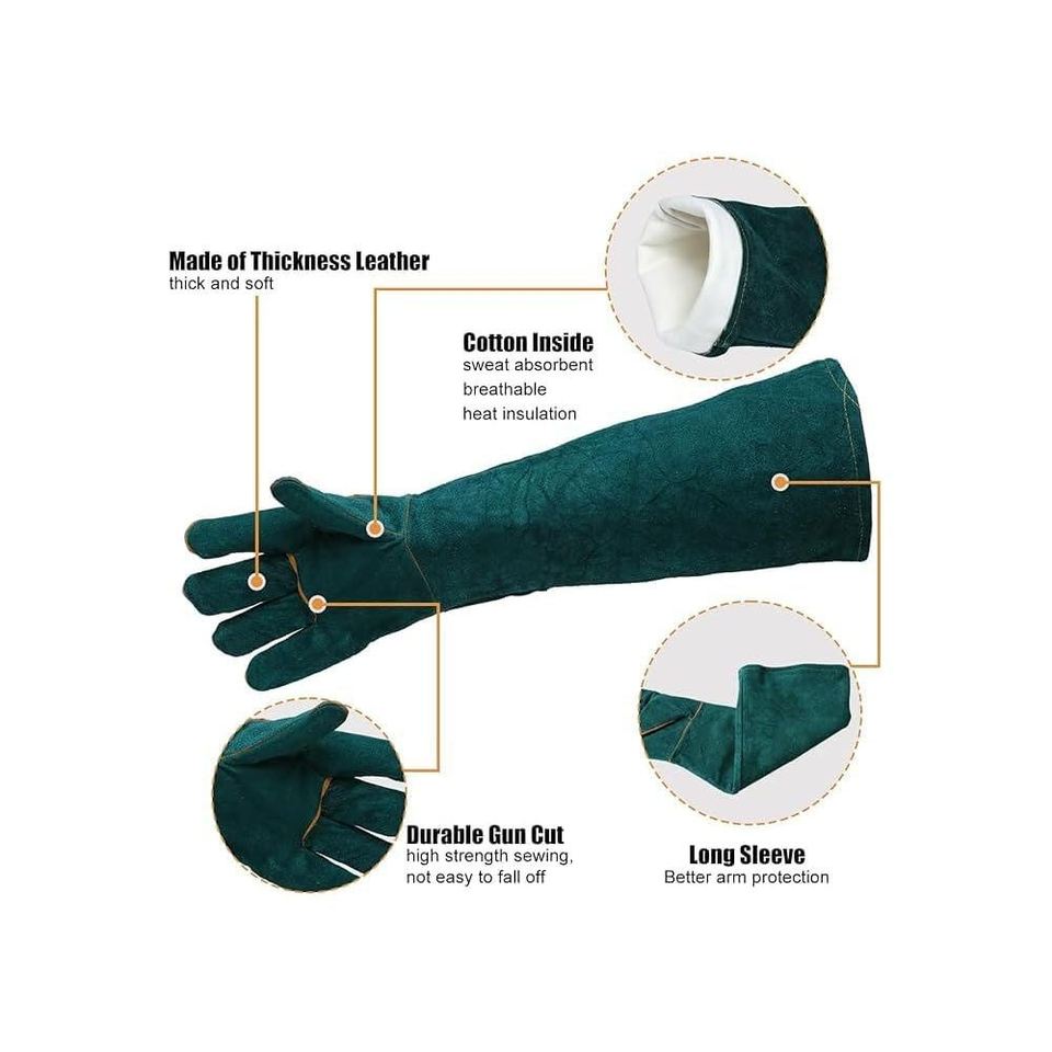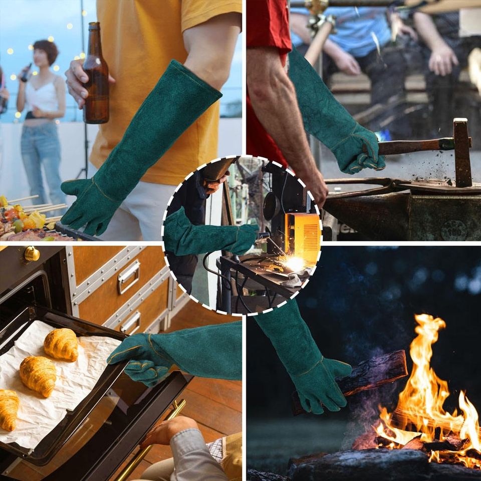 Guantes de Soldadura de Cuero Vacuno de Primera Calidad, con Puño Largo, Resistentes al Calor, para Protección Personal, Bomberos y Barbacoa